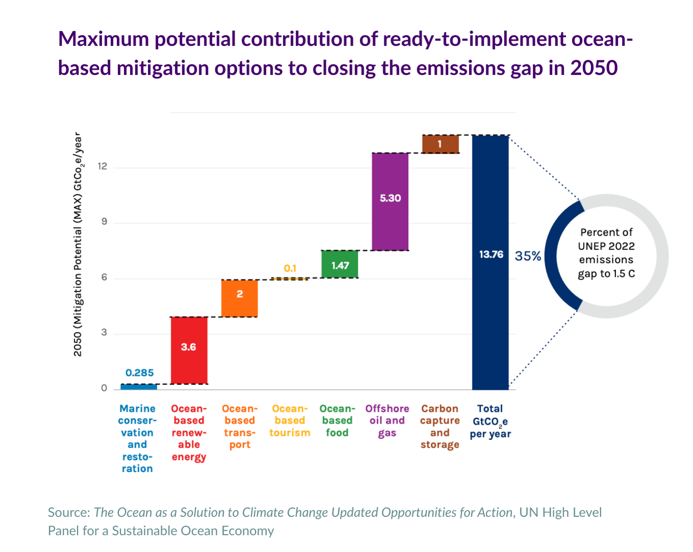 In fact, full implementation of ocean-based climate solutions that are ready for action now could reduce the emissions gap by up to 35 percent on a 1.5°C pathway in 2050.